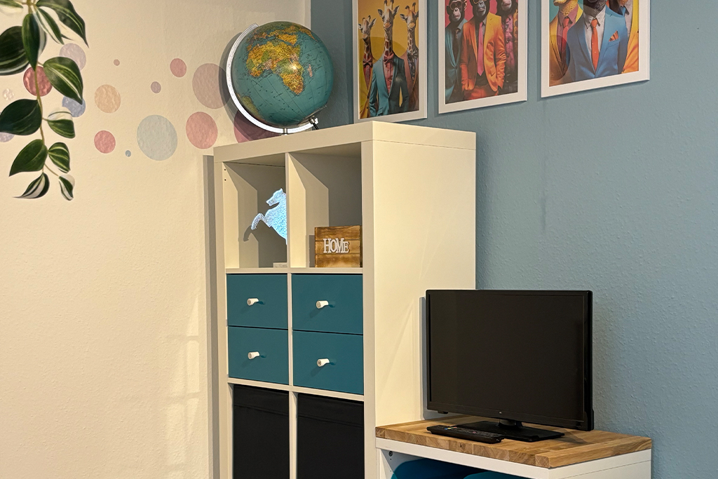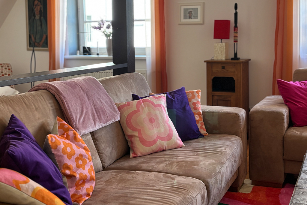 Die gesamte Ferienwohnung wurde mit viel Liebe zum Detail eingerichtet. Farbenfrohe Akzente, individuelle Gestaltung und ein herzliches Ambiente sorgen für Wohlfühlmomente ab dem ersten Augenblick.
